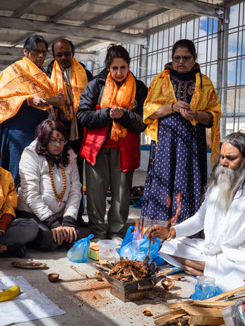 Experience the power of sacred fire rituals and cosmic vibrations. Participate in traditional Havan ceremonies and fire-cooked meals that uplift your frequency and connect you to the universal rhythm. -
